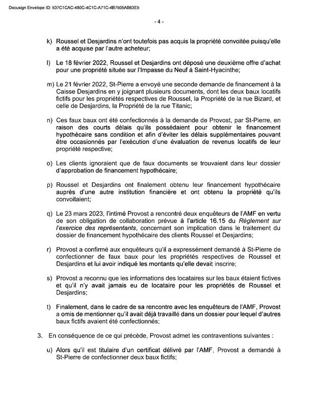 [12] Éric Provost admet avoir demandé à Catherine St-Pierre de confectionner et transmettre des baux fictifs.